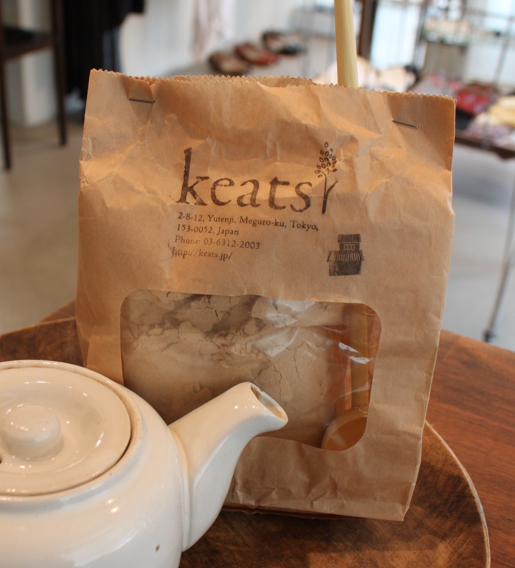 素敵なカフェ発見してしまいました。とっても風通しが良くて、快適でした。ヨモギ茶も美味しくて静かなひとときを過ごせました。お皿やお箸、パンとか雑穀もたくさん販売していて楽しいカフェです。keatsという名前です。