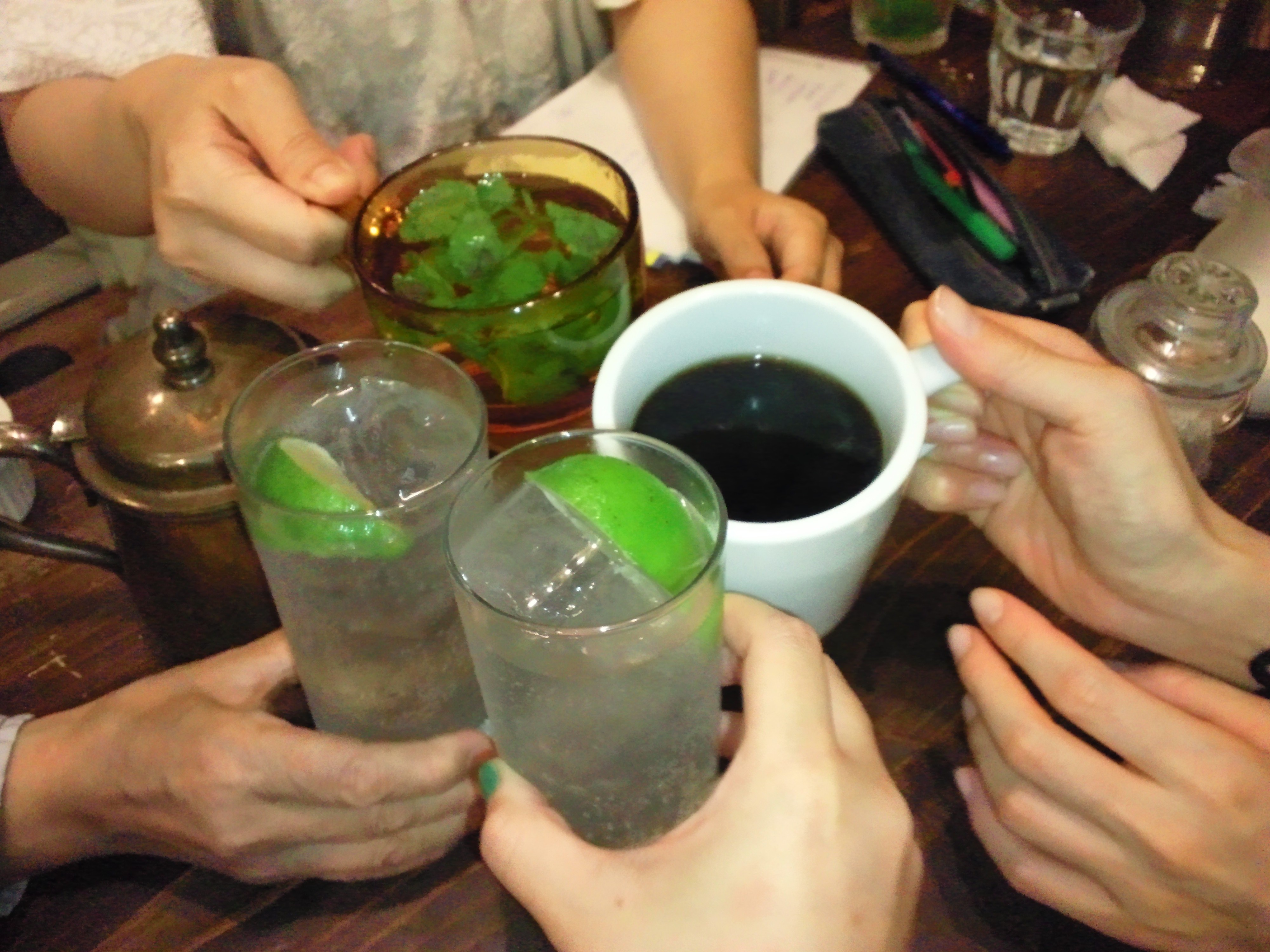 先日京都でスタッフミーティングをしました。ほとんど食事会だったのですが、、、でもこれからのboutique riangを良くしていくために色々話し合いました。お店の人に心配されるほどお料理をたらふく頂きました。最後に固めの杯を交わしたのです。